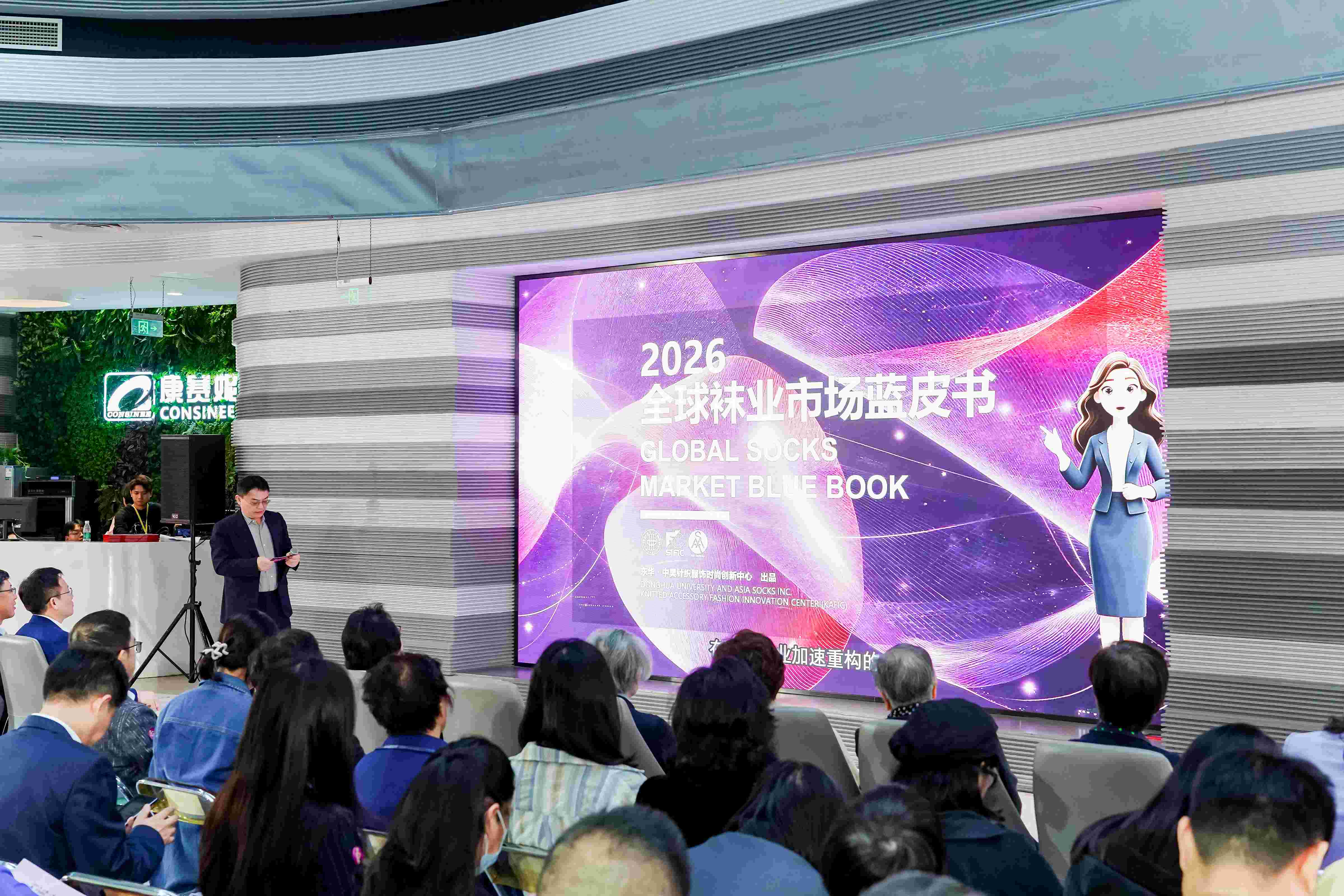 当前,全球时尚产业正迎来科技与创意深度融合的新浪潮。上海市服饰学会副会长、上海中昊针织有限公司董事长高宝霖发布《2026全球袜业市场蓝皮书》,为袜业市场发展提供数据支撑与方向指引;东华大学职业服研究所主任、上海市服饰学会校服职业服专委会主任曹霄洁老师为我们解读《2026国际针织配饰流行趋势》,分享下一年度色彩、材质与设计潮流;设界科技集团有限公司董事长陆平一先生、上海中昊针织有限公司董事长高宝霖先生先生共同启动“2026国际针织配饰流行趋势POP线上发布仪式”,让全球时尚从业者便捷获取前沿资讯。