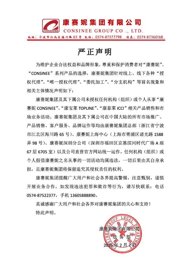 严正声明|康赛妮集团